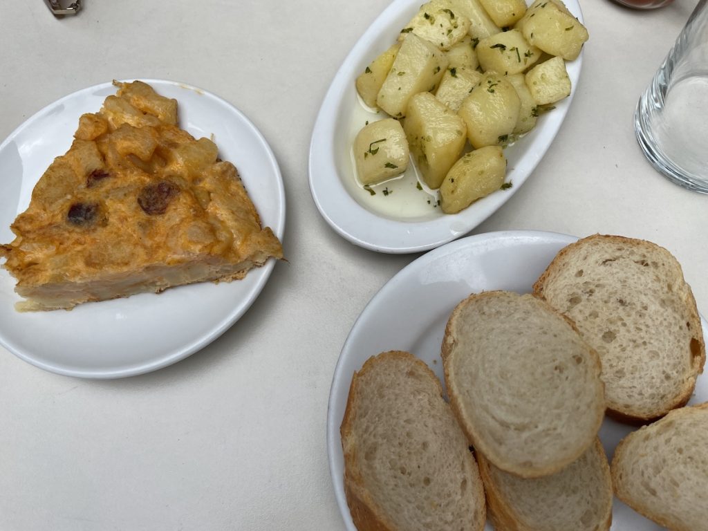 On ne peut pas aller en Espagne et à San Sebastian sans manger de tapas. C’est une des spécialités culinaires espagnoles et en plus d’être délicieux, cela ne coûte vraiment pas cher. Pour ce que vous voyez sur les photos (en double) : patatas bravas, du serrano, une part d’omelette, j’en ai eu pour 17€ avec de l’eau ! Je vous recommande d’aller au Bar Ciaboga, à 1 minute de la plage à pied, vous verrez c’est un régal.